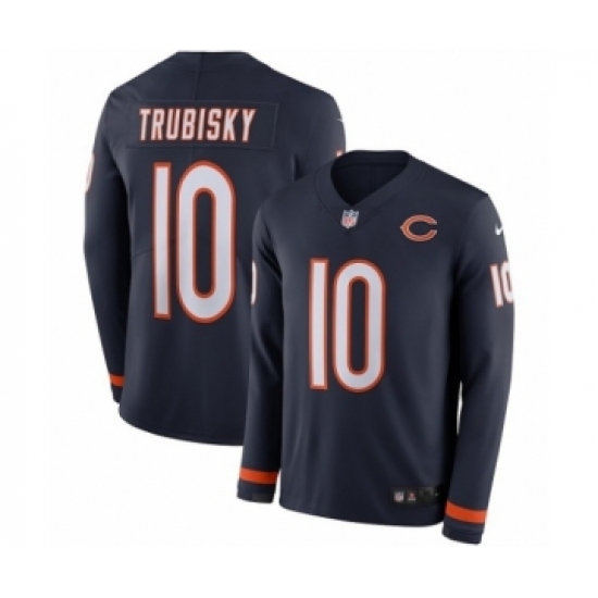 Youth Nike Chicago Bears #10 Mitchell Trubisky Limited Navy Blue Therma Long Sleeve NFL Jersey