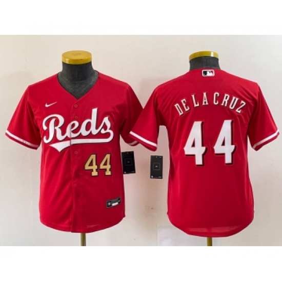 >Youth Nike Cincinnati Reds #44 Elly De La Cruz Number Red Cool Base Stitched Baseball Jersey1