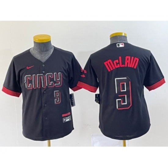 Youth Nike Cincinnati Reds #9 Matt McLain Black 2023 City Connect Cool Base Stitched Jersey1