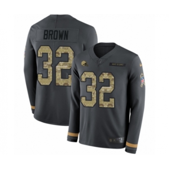 >Youth Nike Cleveland Browns #32 Jim Brown Limited Black Salute to Service Therma Long Sleeve NFL Jersey