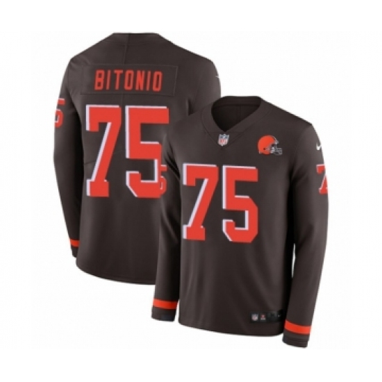 >Youth Nike Cleveland Browns #75 Joel Bitonio Limited Brown Therma Long Sleeve NFL Jersey