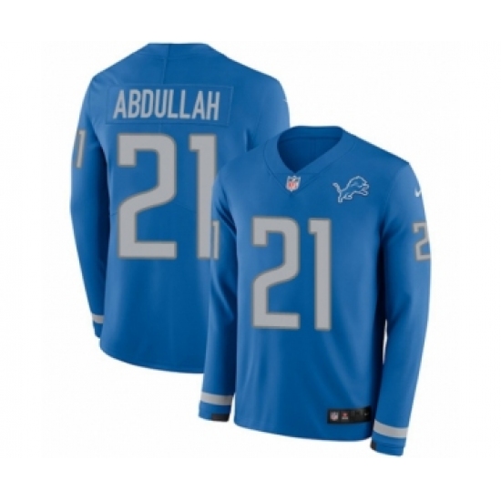>Youth Nike Detroit Lions #21 Ameer Abdullah Limited Blue Therma Long Sleeve NFL Jersey