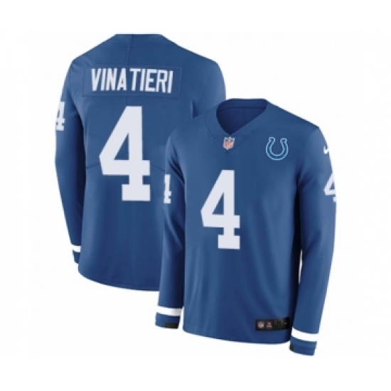 >Youth Nike Indianapolis Colts #4 Adam Vinatieri Limited Blue Therma Long Sleeve NFL Jersey