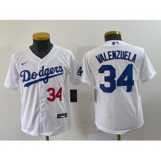 Youth Nike Los Angeles Dodgers #34 Fernando Valenzuela Number White Stitched Cool Base Jersey