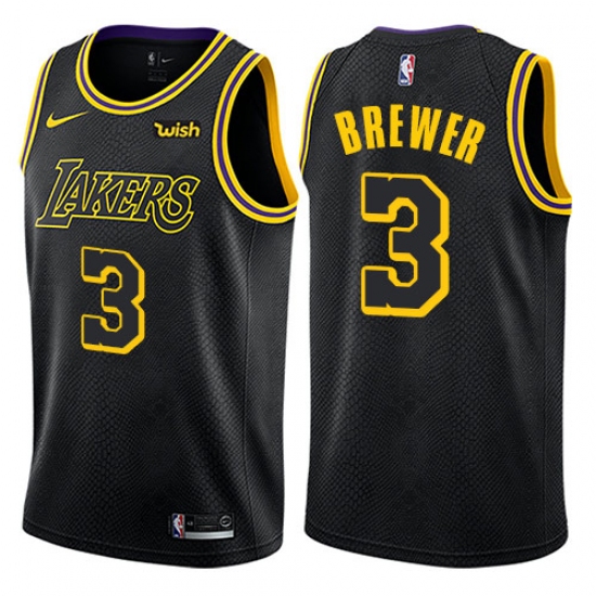 >Youth Nike Los Angeles Lakers #3 Corey Brewer Swingman Black NBA Jersey - City Edition