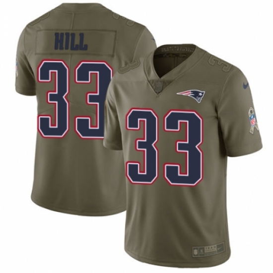 >Youth Nike New England Patriots #33 Jeremy Hill Limited Olive 2017 Salute to Service NFL Jersey