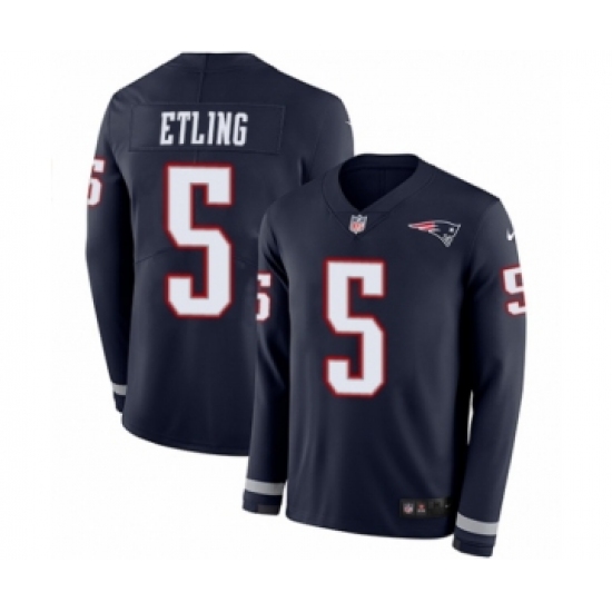 Youth Nike New England Patriots #5 Danny Etling Limited Navy Blue Therma Long Sleeve NFL Jersey