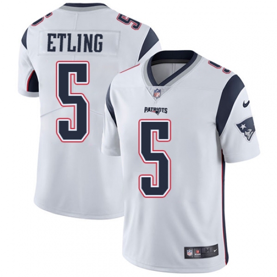 >Youth Nike New England Patriots #5 Danny Etling White Vapor Untouchable Limited Player NFL Jersey