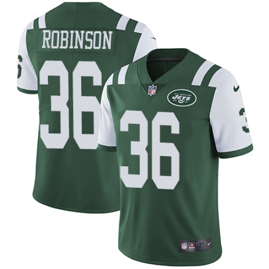 Home>NFL>New York Jets>Rashard Robinson>Youth Nike New York Jets #36 Rashard Robinson Green Team Color Vapor Untouchable Elite Player NFL Jersey