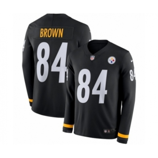 >Youth Nike Pittsburgh Steelers #84 Antonio Brown Limited Black Therma Long Sleeve NFL Jersey