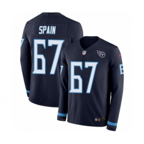 >Youth Nike Tennessee Titans #67 Quinton Spain Limited Navy Blue Therma Long Sleeve NFL Jersey