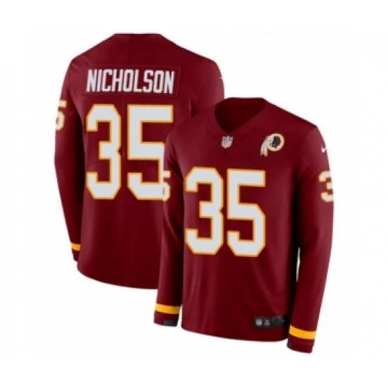 Youth Nike Washington Redskins #35 Montae Nicholson Limited Burgundy Therma Long Sleeve NFL Jersey