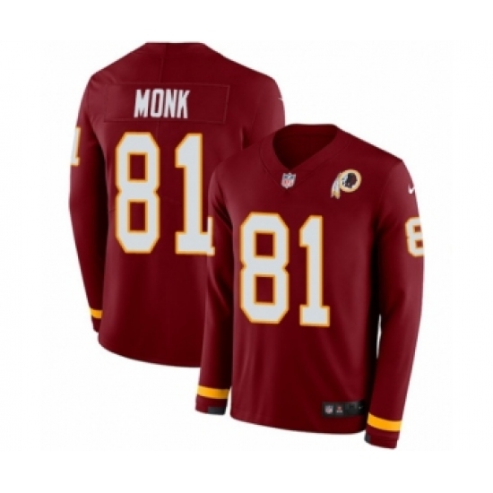 Youth Nike Washington Redskins #81 Art Monk Limited Burgundy Therma Long Sleeve NFL Jersey