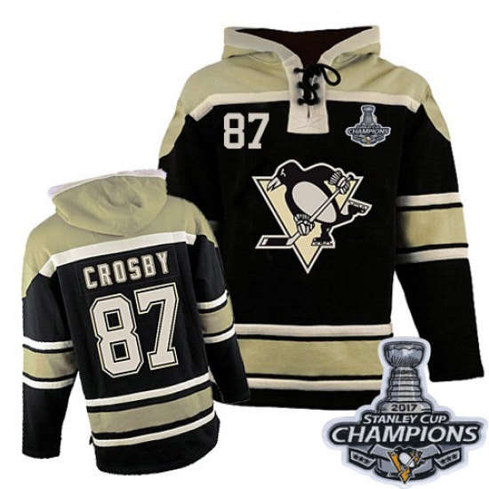 Home>NHL>Pittsburgh Penguins>Sidney Crosby>Youth Old Time Hockey Pittsburgh Penguins #87 Sidney Crosby Premier Black Sawyer Hooded Sweatshirt 2017 Stanley Cup Champions
