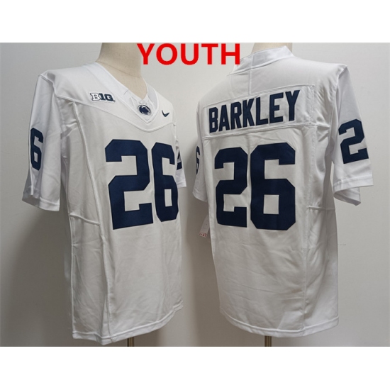>Youth Penn State Nittany Lions #26 Saquon Barkley White Stitched Jersey