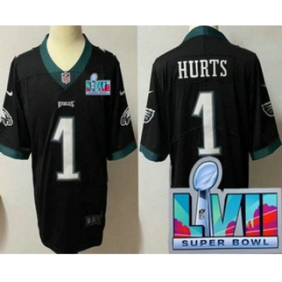 Youth Philadelphia Eagles #1 Jalen Hurts Limited Black Super Bowl LVII Vapor Jersey