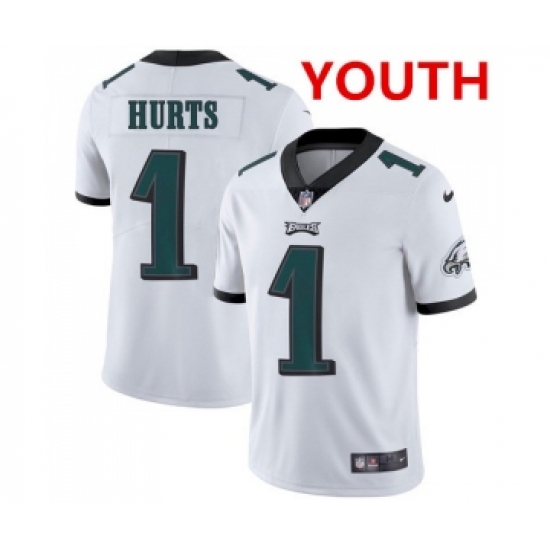 >Youth Philadelphia Eagles #1 Jalen Hurts White Vapor Untouchable Limited Stitched Jersey