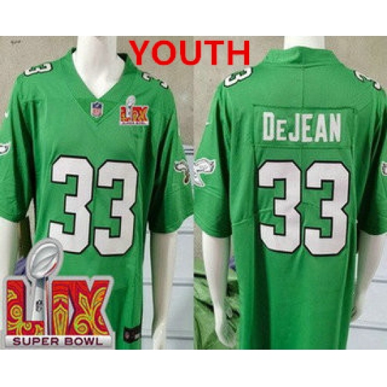 >Youth Philadelphia Eagles #33 Cooper DeJean Limited Kelly Green Super Bowl LIX Vapor Jersey