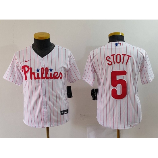 >Youth Philadelphia Phillies #5 Bryson Stott White Pinstripe Stitched Cool Base Jersey