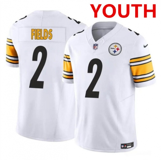 >Youth Pittsburgh Steelers #2 Justin Fields White 2023 F.U.S.E. Vapor Untouchable Limited Football Stitched Jersey