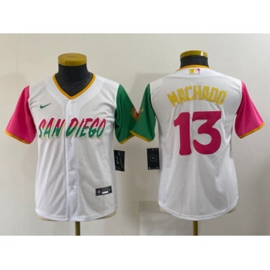 Youth San Diego Padres #13 Manny Machado White 2022 City Connect Cool Base Stitched Jersey