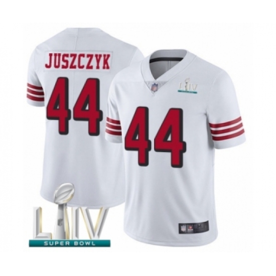 >Youth San Francisco 49ers #44 Kyle Juszczyk Limited White Rush Vapor Untouchable Super Bowl LIV Bound Football Jersey