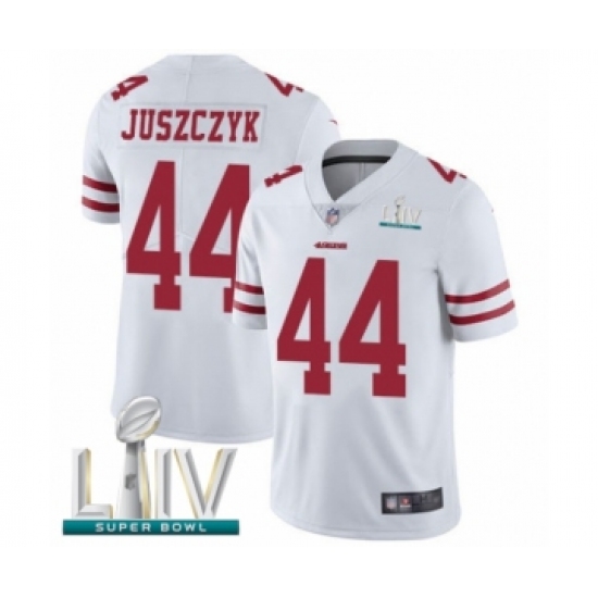 >Youth San Francisco 49ers #44 Kyle Juszczyk White Vapor Untouchable Limited Player Super Bowl LIV Bound Football Jersey