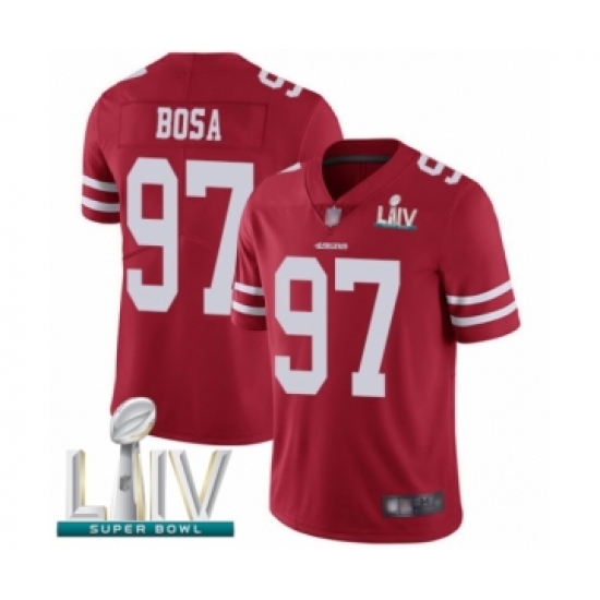>Youth San Francisco 49ers #97 Nick Bosa Red Team Color Vapor Untouchable Limited Player Super Bowl LIV Bound Football Jersey