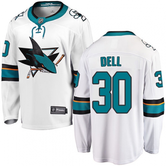 Home>NHL>San Jose Sharks>Aaron Dell>Youth San Jose Sharks #30 Aaron Dell Fanatics Branded White Away Breakaway NHL Jersey