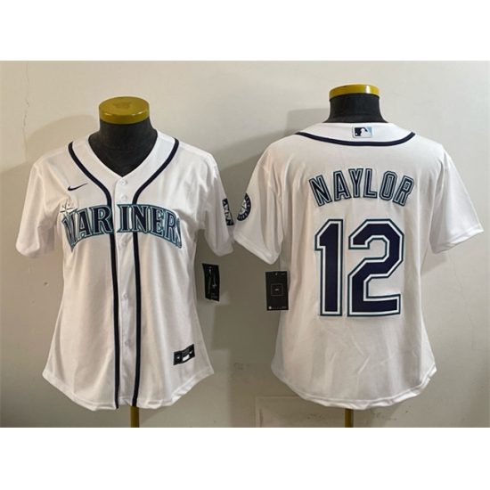 >Youth Seattle Mariners #12 Josh Naylor White Cool Base Stitched Baseball Jersey