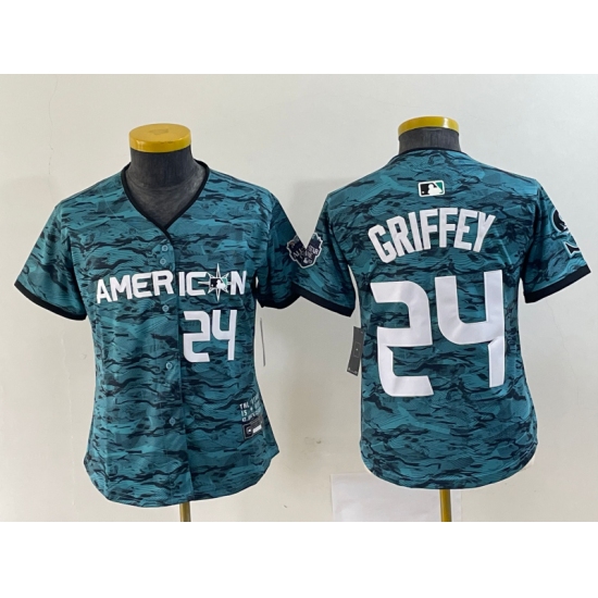 Youth Seattle Mariners #24 Ken Griffey Number Teal 2023 All Star Cool Base Stitched Jersey