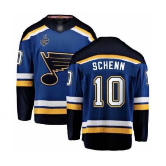 >Youth St. Louis Blues #10 Brayden Schenn Fanatics Branded Royal Blue Home Breakaway 2019 Stanley Cup Final Bound Hockey Jersey