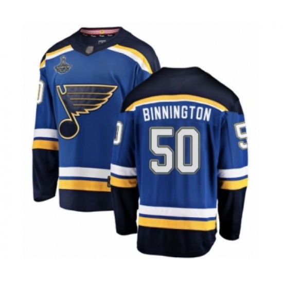 Youth St. Louis Blues #50 Jordan Binnington Fanatics Branded Royal Blue Home Breakaway 2019 Stanley Cup Champions Hockey Jersey