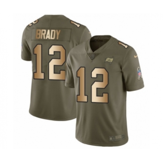 Men's Tampa Bay Buccaneers #12 Tom Brady Limited Olive Gold 2019 Salute to Service Football Jersey