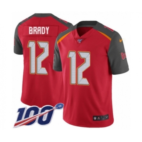 Youth Tampa Bay Buccaneers #12 Tom Brady Red Team Color Vapor Untouchable Limited Player 100th Season Football Jersey