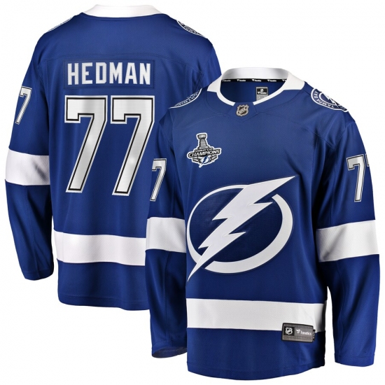 Women's Tampa Bay Lightning #77 Victor Hedman Fanatics Branded Blue Home 2020 Stanley Cup Champions Breakaway Jersey