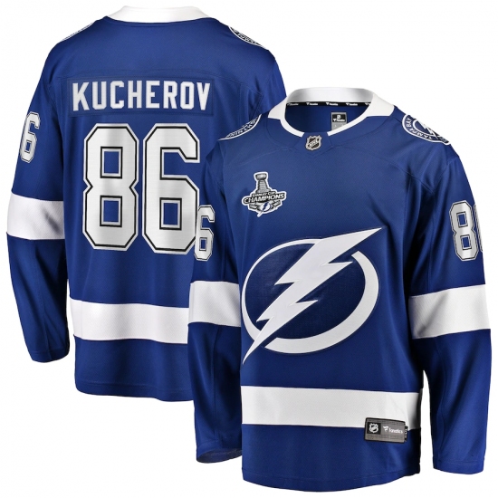 Youth Tampa Bay Lightning #86 Nikita Kucherov Fanatics Branded Blue Home 2020 Stanley Cup Champions Breakaway Jersey