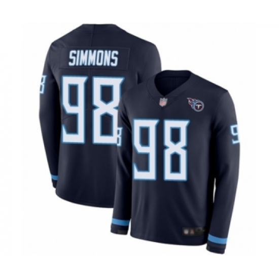 >Youth Tennessee Titans #98 Jeffery Simmons Limited Navy Blue Therma Long Sleeve Football Jersey