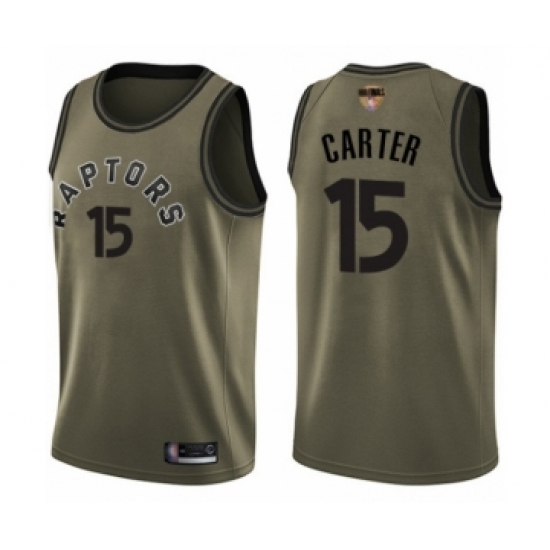 >Youth Toronto Raptors #15 Vince Carter Swingman Green Salute to Service 2019 Basketball Finals Bound Jersey
