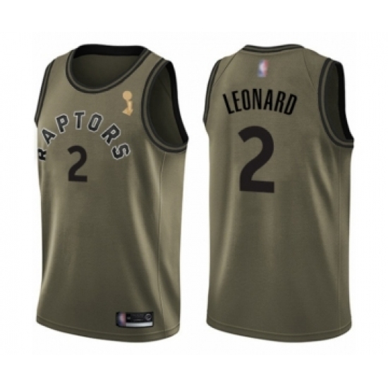>Youth Toronto Raptors #2 Kawhi Leonard Swingman Green Salute to Service 2019 Basketball Finals Champions Jersey