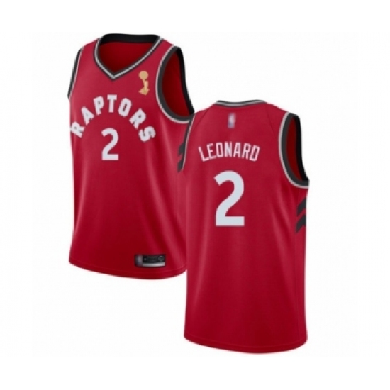 >Youth Toronto Raptors #2 Kawhi Leonard Swingman Red 2019 Basketball Finals Champions Jersey - Icon Edition