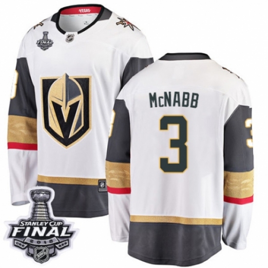 Men's Adidas Vegas Golden Knights #3 Brayden McNabb Authentic White Away 2018 Stanley Cup Final NHL Jersey