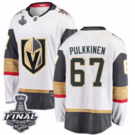 >Youth Vegas Golden Knights #67 Teemu Pulkkinen Authentic White Away Fanatics Branded Breakaway 2018 Stanley Cup Final NHL Jersey