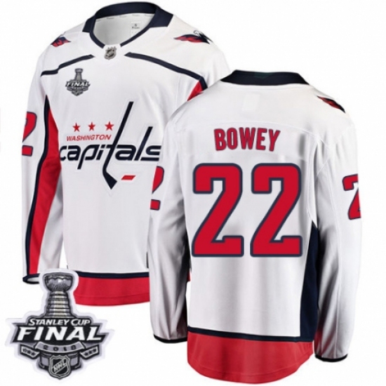 Men's Washington Capitals #22 Madison Bowey Fanatics Branded White Away Breakaway 2018 Stanley Cup Final NHL Jersey