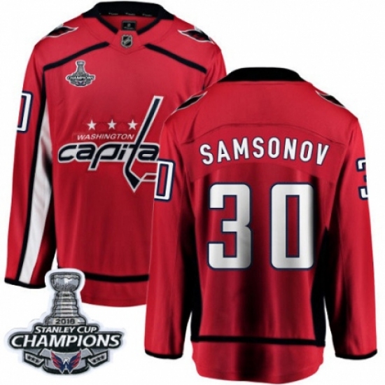 Men's Adidas Washington Capitals #30 Ilya Samsonov Authentic Red Home 2018 Stanley Cup Final Champions NHL Jersey