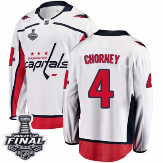 >Youth Washington Capitals #4 Taylor Chorney Fanatics Branded White Away Breakaway 2018 Stanley Cup Final NHL Jersey