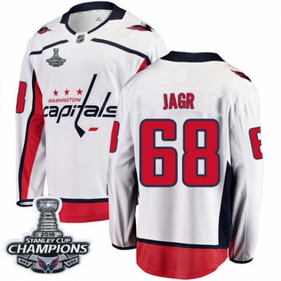 Men's Adidas Washington Capitals #68 Jaromir Jagr Authentic White Away 2018 Stanley Cup Final NHL Jersey