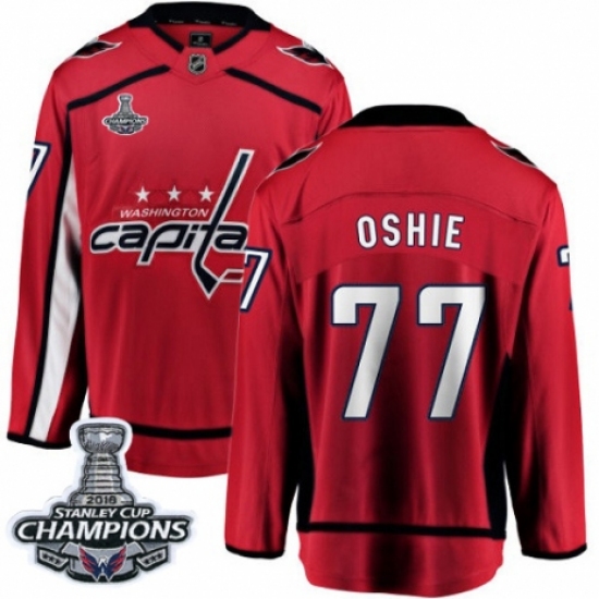 >Youth Washington Capitals #77 T.J. Oshie Fanatics Branded Red Home Breakaway 2018 Stanley Cup Final Champions NHL Jersey
