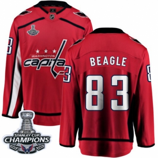 >Youth Washington Capitals #83 Jay Beagle Fanatics Branded Red Home Breakaway 2018 Stanley Cup Final Champions NHL Jersey