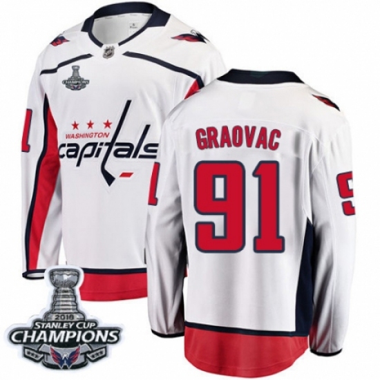 Youth Washington Capitals #91 Tyler Graovac Fanatics Branded White Away Breakaway 2018 Stanley Cup Final Champions NHL Jersey